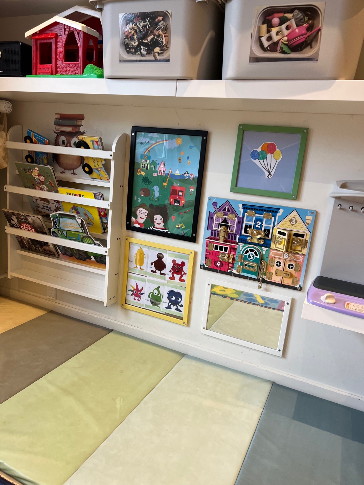- Vi er nysgerrige på væggen med spejl, plakater og låsebræt.